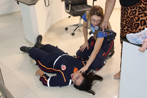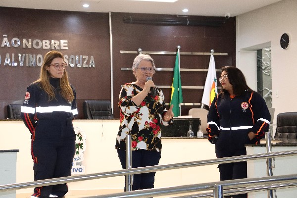 Profissionais do Serviço de Atendimento Móvel de Urgência (SAMU), a enfermeira Edineuma Fernandes e a técnica de enfermagem Jocélia Costa expuseram abordagens teóricas e práticas referentes aos cuidados iniciais a serem prestados rapidamente a uma pessoa, vítima de acidente ou mal súbito.